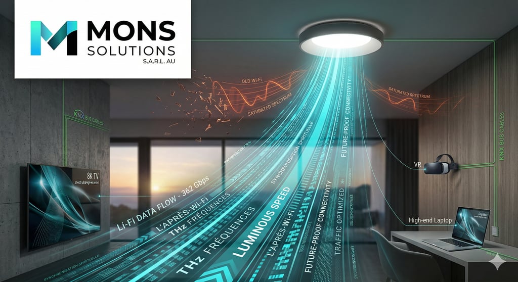 Li-Fi pour les zones critiques : Dans votre bureau pour un télétravail intensif sans latence, ou dans votre salle de cinéma privée pour un streaming 8K pur.